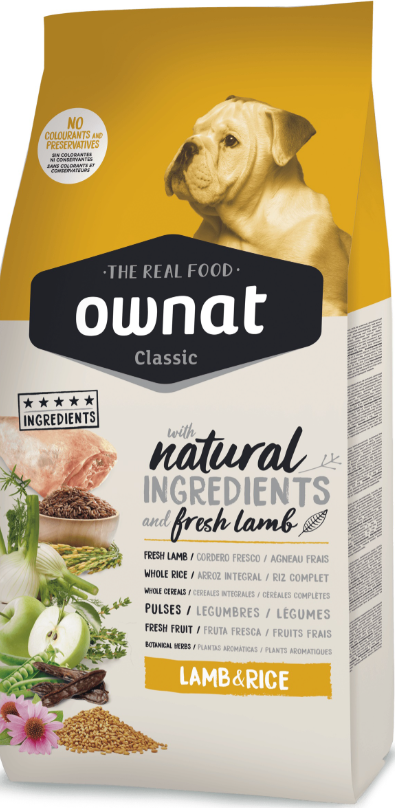 М’ясо (30%) (дегідратоване м’ясо (20%), свіжа ягнятина* (10%)), цільнозерновий рис* (15%), цільний ячмінь* (10%), курячий жир, цільна пшениця* (9%), цільна кукурудза* (8%), цілісний горох* (5%), пшеничні висівки* (5%), ріжкове дерево* (2%), свіже яблуко* (1%), жир лосося, насіння льону* (1%), м’якоть буряків, фрукто- та мананоолігосахариди, пивні дріжджі* (0,5%), ботанічні трави (0,02%) (фенхель звичайний*, ехінацея* чебрець*), екстракт юкки шидігера. *Натуральні інгредієнти.