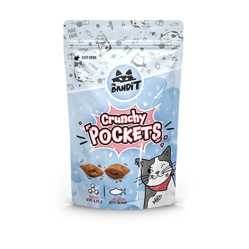 Mr. Bandit ХРУСТКІ ПОДУШЕЧКИ — хрусткі, м’ясні смаколики для котів–гурманів. Це хрустке збагачене таурином печиво додає енергії бешкетникам!