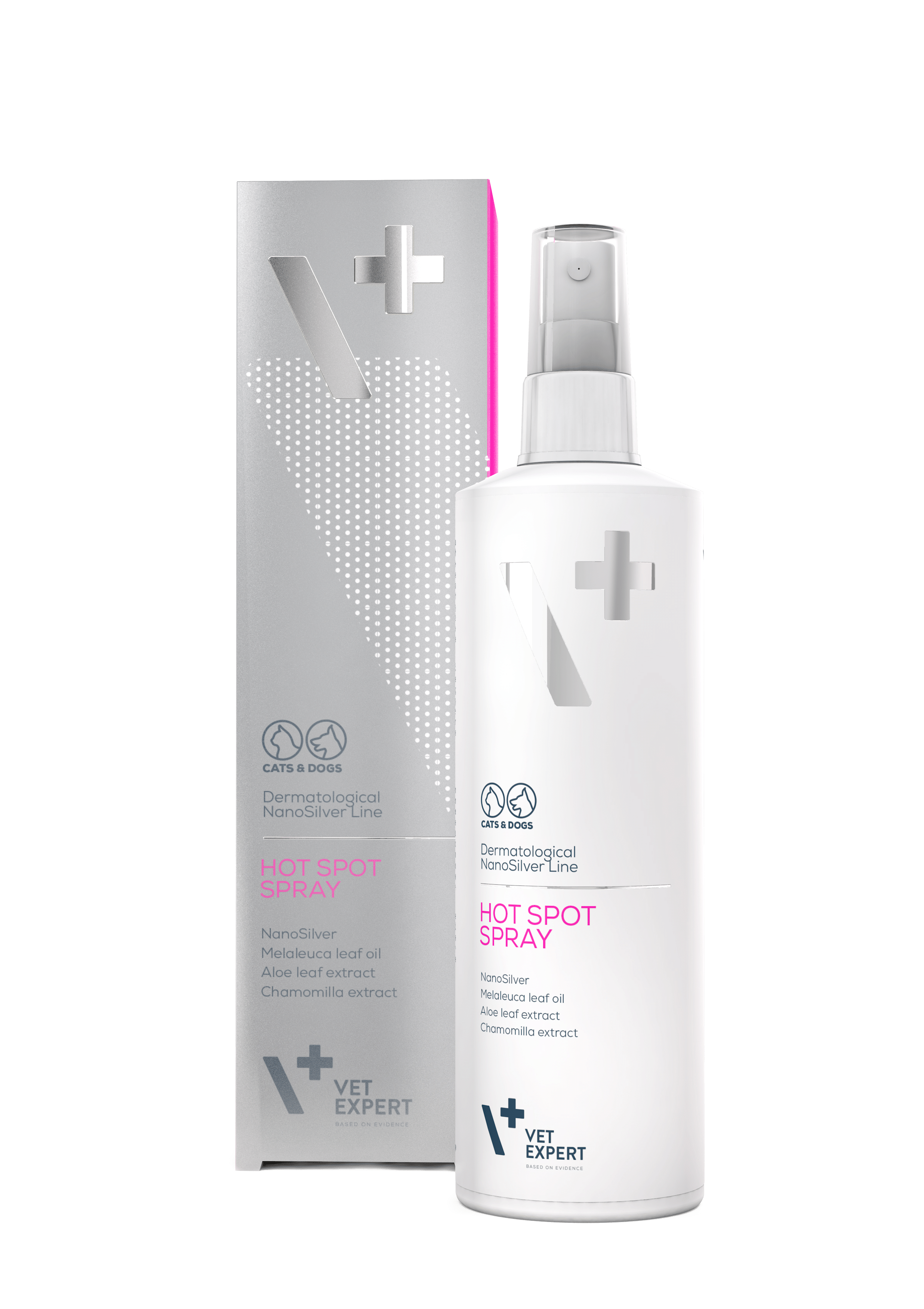 Vet Expert NanoSiver Hot Spot Spray Спрей Наносрібло для гарячих точок працює над найпоширенішим клінічним захворюванням шкіри у котів і собак Гарячі точки. Захворювання має властивість рецидивувати.